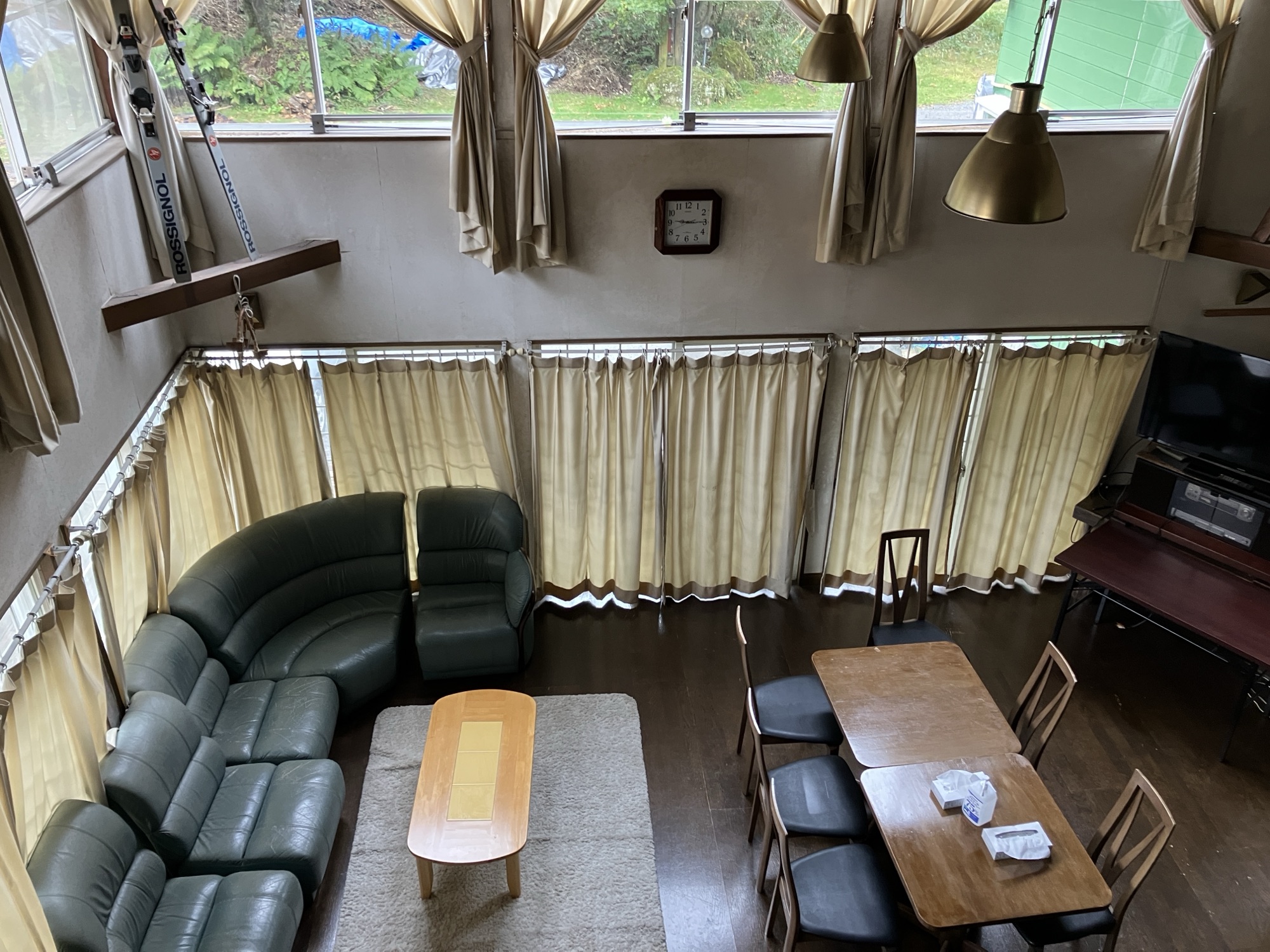 フォトは我が家の多目的ホールです。ここでスキーの技術的なレクチャーを行ったり、懇親会での会場になったり、お荷物をお預かりしたり…と、まさにいろんな用途で活用することができるんですよ。